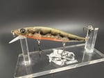 110 jerkbait that will suspend with a slight head down profile rigged w #6 triple grips